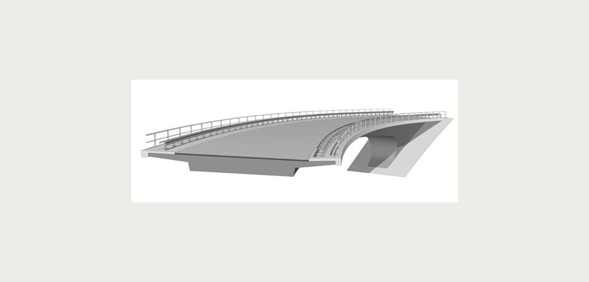 Neubau der Überführung der Christian-Grüninger-Straße über die B10 im Zuge des neuen B10-Anschlusses Öde in Göppingen. Einseitig eingespanntes Spannbeton-Rahmenbauwerk mit 51,50 m Stützweite und in Grundriss und Aufriss gekrümmtem Verlauf. Sehr schlanker gevouteter Überbau als Plattenbalkenquerschnitt. Ausführungsplanung für Gottlob Brodbeck GmbH & Co. KG, Metzingen.
