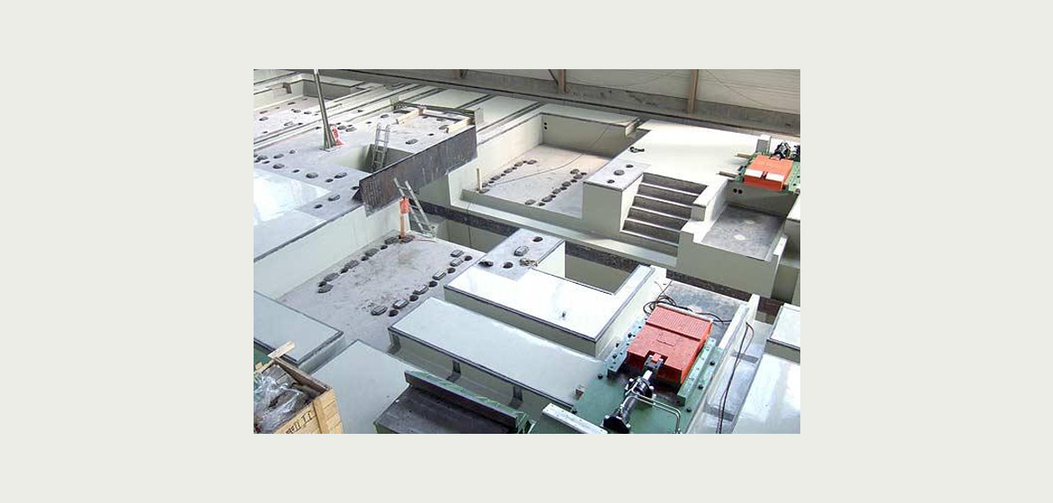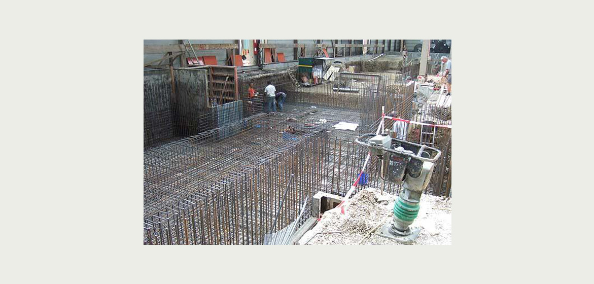 Einbau von Maschinenfundamenten und –gruben in einer bestehenden Fertigungshalle auf einer Fläche von ca. 22 x 115 m. Die Fundamente sind in unterschiedlichen Ebenen angeordnet; die Gruben haben bis zu 5 m Tiefe.