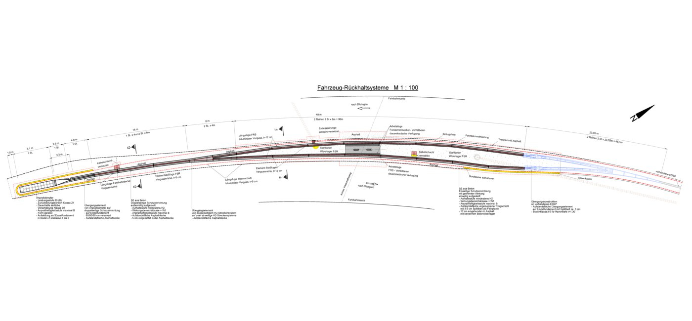 Zur Reduktion der Zwängungen wurde das statische Grundsystem geändert und auf die bestehenden Schrägstützen in der Böschung verzichtet.