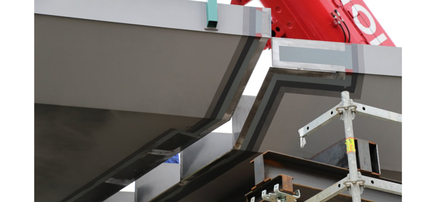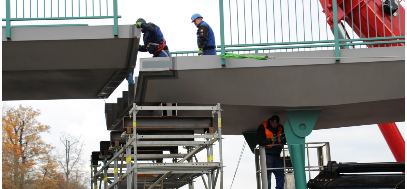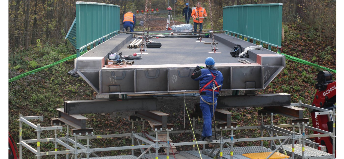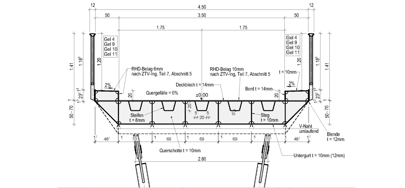 Aufgrund der starken Schädigung des Überbaus musste dieser ersetzt werden. Aus Gründen der Wirtschaftlichkeit und zur Gewährleistung der Dauerhaftigkeit fiel die Entscheidung auf einen dichtgeschweißten, geschlossenen Stahlhohlkasten, welcher auf den bestehenden Stahlbetonwiderlagern auflagert.